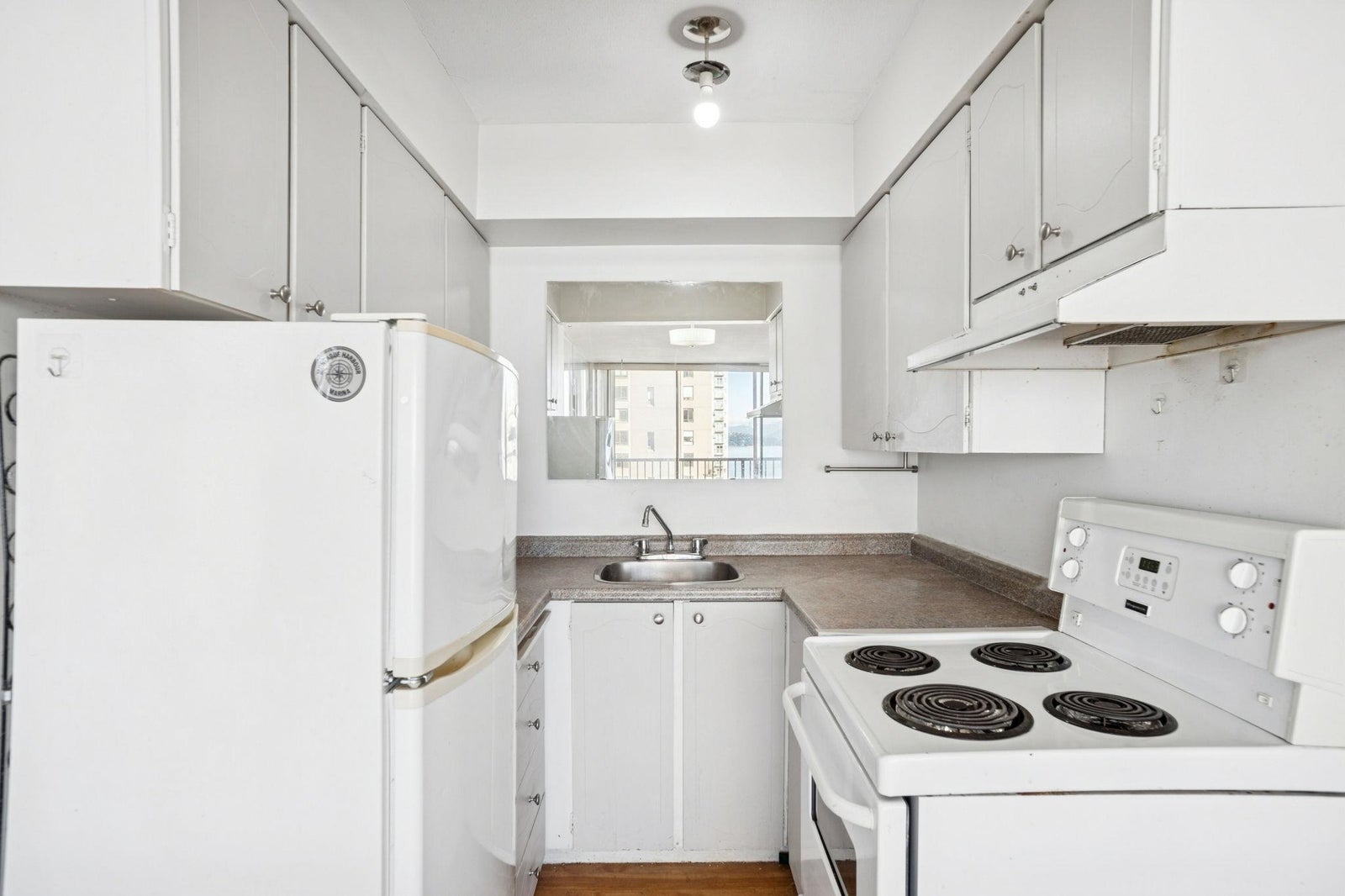 Charming 1 bedroom, 1 bath condo with picturesque water views of English Bay awaits your personal touch. Bask in the abundant natural light and invigorating ocean breezes in this well-priced gem. Situated just steps from the beach, this ideal location offers convenience to Denman and Davie street shops, cafes, and restaurants. The building boasts amenities including an indoor pool and sauna for your relaxation. Recent plumbing upgrades and parkade resurfacing have been done. Don't let this enchanting opportunity pass you by - schedule your viewing today and immerse yourself in the charm of coastal living. Call today for a viewing!