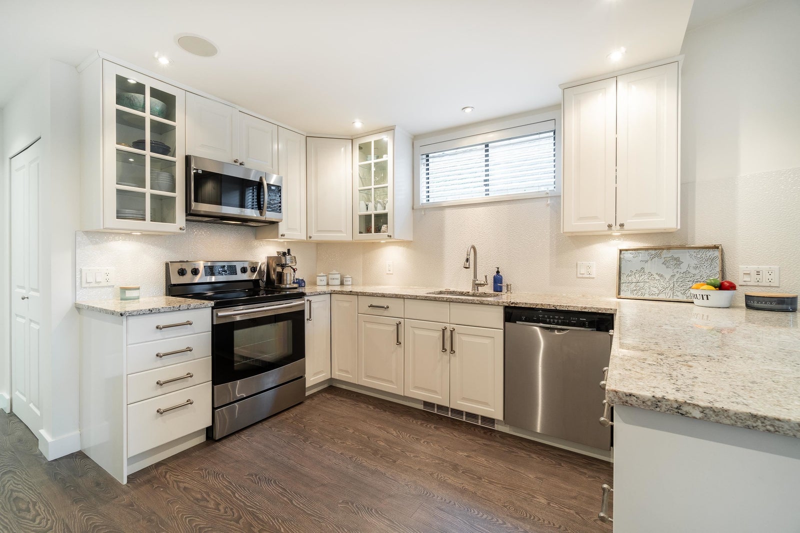 Live on the Golden Mile without the Golden Mile price tag! This North-facing 2 bed/2 bath townhouse has been professionally renovated top to bottom. It’s bright and quiet, with high ceilings, gorgeous spa-like bathrooms, and a huge open-concept kitchen great for entertaining. Meticulously kept, the space includes laminate flooring, upgraded lighting, custom Hunter Douglas blinds, newer LG washer/dryer, fresh paint, and plenty of closet space with custom built-ins. Set in a well-maintained, pet-friendly boutique 6-unit building with low strata fees, you’re steps from Jericho Beach, endless parks, 4th Ave shops, and the Yacht Club while being on a traffic-calmed street with ample parking. A perfectly updated, move-in-ready home in a prestigious Kitsilano location